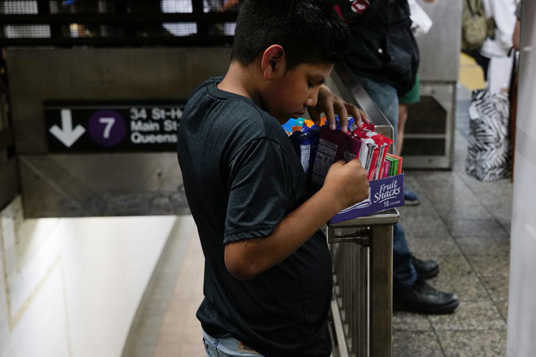 Los hijos a los que se refiere son dos que siguen en Ecuador y su bebé que nació en Nueva York hace un año cuando llegó a la ciudad junto a su esposo. Aunque no tiene consigo a su bebé este martes de finales de junio, Valeria, quien rogó que no se usara su nombre real por miedo a ser detenida o incluso deportada, cuenta que en muchas ocasiones ha tenido que cargar con el niño a su espalda mientras trabaja porque no ha tenido quién lo cuidara. Como ella, de los más de 200.000 migrantes que han llegado a Nueva York en los últimos dos años, muchos han recurrido a la venta ambulante de frutas y dulces en las estaciones del metro y los parques públicos. Lo hacen porque es el único trabajo en el que pueden llevar a sus hijos consigo, ya que no tienen dónde ni con quién dejarlos.