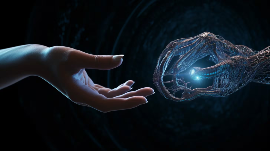 Encuentro trascendental: Un intrigante vínculo entre una mano femenina y un ser alienígena, explorando la conexión humana y la maravilla de lo desconocido. – (Imagen ilustrativa Infobae)